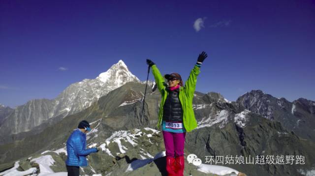 大姑娘峰顶峰照片,背景是高度6250米的主峰——幺妹峰。