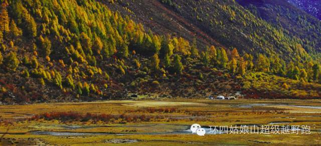 全程高山草甸和土路混合。此段风景绝佳,11月可以看到彩色的山林,对面的雪山,还能看到雪山下的大海子同花海子。这一段都是高山草甸,路是牦牛在草甸踏出来的小土路,不是太明显,大家需要十分注意路标,如果跑一段看不到路标就需要停下来好好找一下路标再继续。由于此段小路较大,在花海子设置了一个检查站CP5。