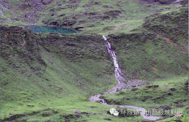 沿瀑布下到谷底后沿水流的右侧下山,一直下到坡底后过河,前行1公里左右到达大黄棚子。50公里组的从瀑布折返,从大黄棚子至双海子的往返路段同60公里组相同。
