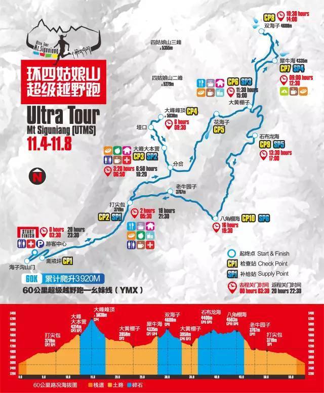 距离:58.9公里/累计爬升 D+ 3920/累计下降 D- 3850