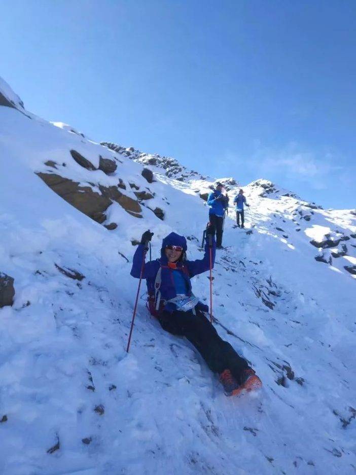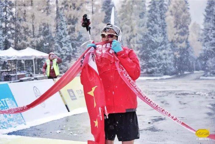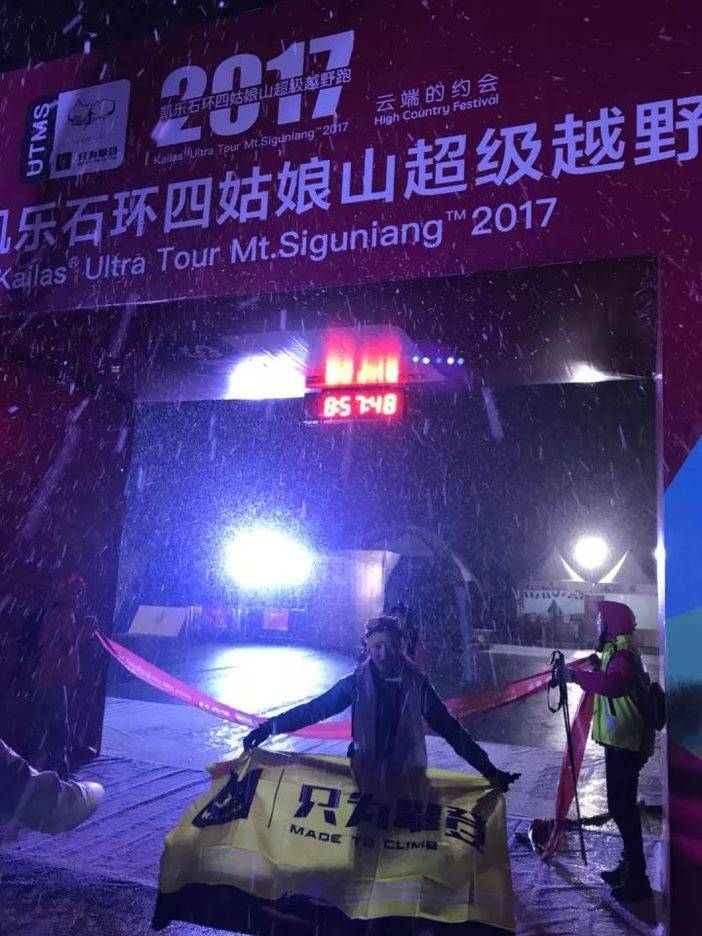 在60公里组即将关门之际,来自云南的凯乐石跑山帮成员在漫天飞雪中冲线,获得女子第六,太不容易啦!