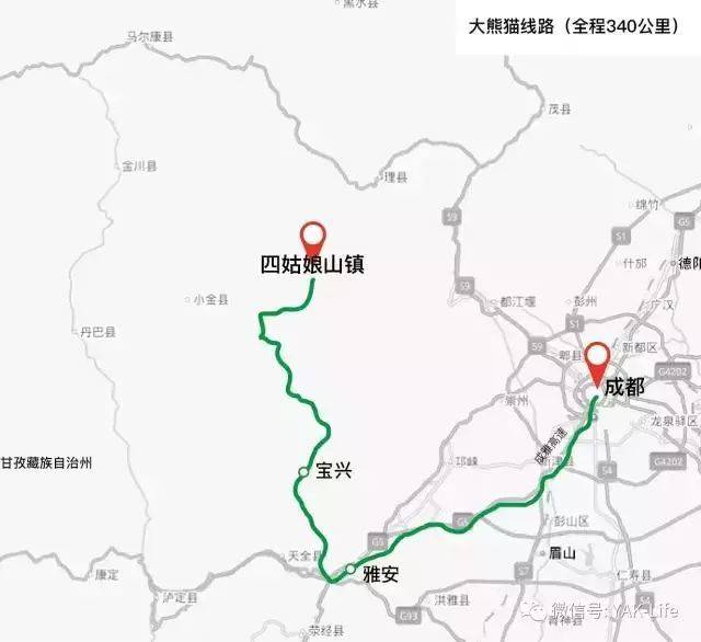 大熊猫环线,一条看熊猫国宝线路,适合家庭出游,全程340公里: