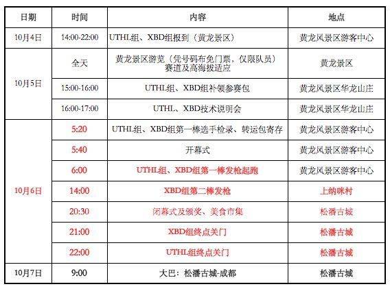 Q2:“黄龙超级越野赛”(UTHL、XBD)日程表