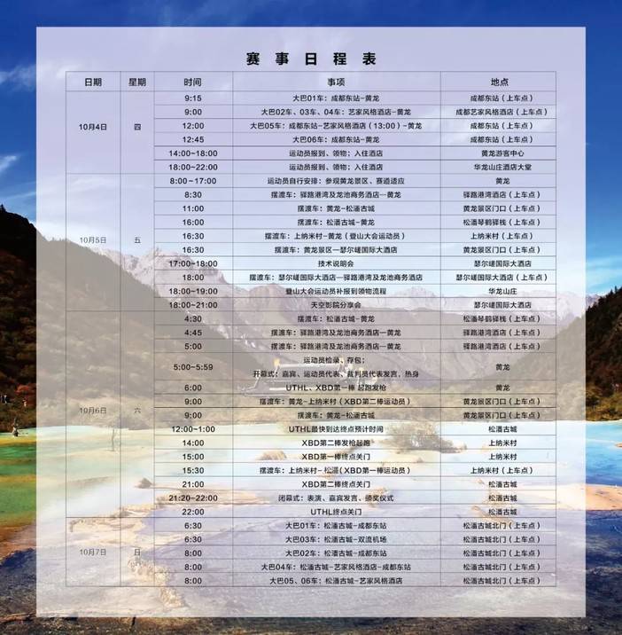 下午4:30组委会有安排摆渡车从黄龙景区门口到瑟尔嵯国际大酒店,选手可凭参赛手环乘坐。