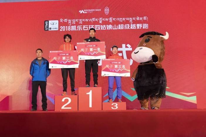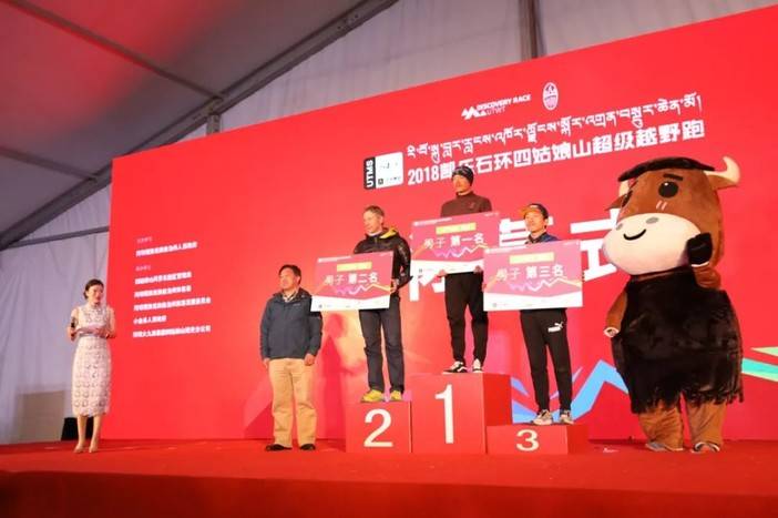 阿坝州体育局社会体育科科长甲华宣布UTMS60男女前三名成绩,并清唱了一段祝酒歌表示对大家安全完赛的祝贺。