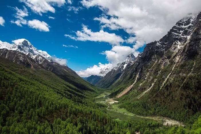 岷山主峰雪宝顶(海拔5588米),赛道位于雪宝顶西北面;