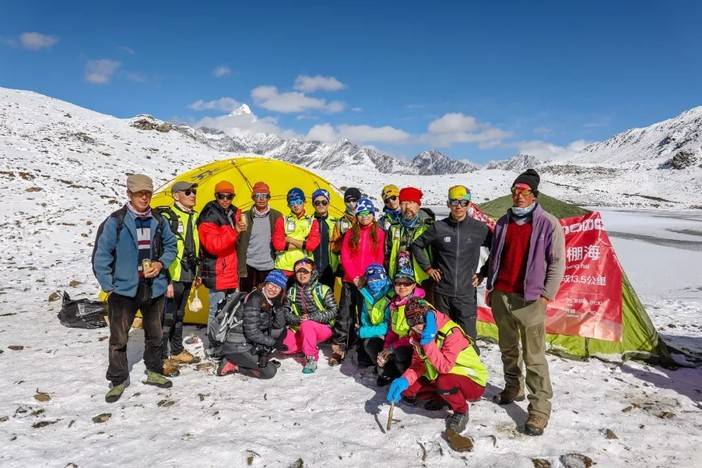 清晨起床,打水开伙烧水煮粥,收拾家伙准备迎接跋涉而来的选手们。太阳缓缓升起,阳光洒在雪山顶上映出一片金光,光弥漫开来,温暖了每一个人。三三两两的伙伴,沿着赛道,转个几圈去和幺妹说早安又飞奔回来。选手来得比想象中晚,我们喂饱了自己,担心热食的温度,翘首以盼。