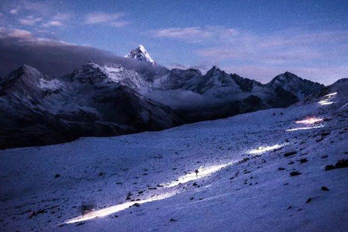 不知道有没有人专门去研究越野跑爱好者的心理,不觉得奇怪么,像是一种轻奢的兴趣爱好,但似乎从头到尾看来都是赤裸裸地找虐,明明花相同的钱可以去海边度假享受阳光沙滩,却偏偏要把自己丢进荒蛮之地,以脆弱的生物特性来挑衅冷酷雪山的威严,严寒、风雪、黎明前的黑暗蔓延、高海拔稀薄的空气还有无尽的爬升和下降......