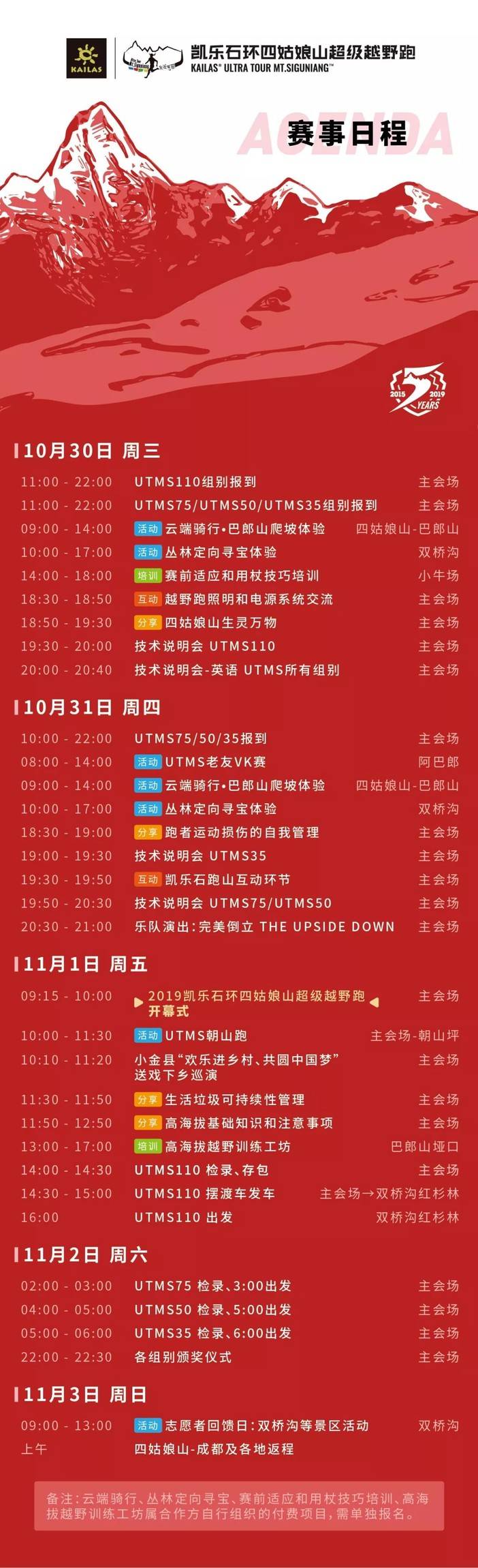 2019凯乐石环四姑娘山超级越野跑为呈现赛事的多样性与丰富性,从适应性训练到生活垃圾的可持续性,多面地为选手及志愿者组织了以下精彩活动: