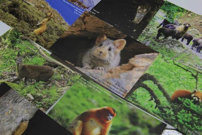 “中国的哺乳动物”明信片含10种分布于西南地区的哺乳动物,包括川金丝猴、小熊猫、羚牛等明星物种。