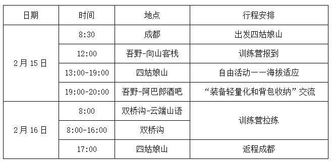 ● 统一安排成都-目的地的交通,以及目的地住宿,训练以外,大家有更多的相处交流时间。