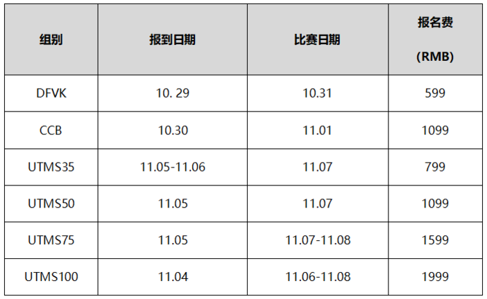 2020年UTMS各组别报名费价格表