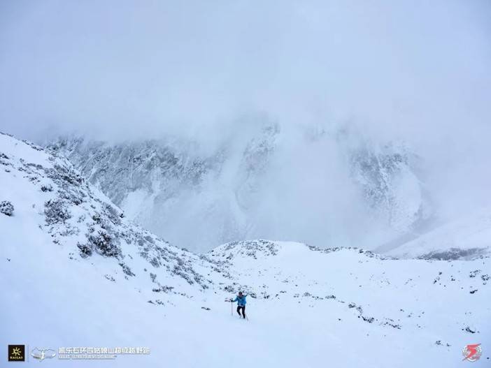 大雪造成的另一困扰是寻路,从花海子到犀牛海的一段折返线路,Tim需要自行开路,大雪覆盖了路标及原有的道路。凭借手表提供的轨迹导航和地图,Tim确保自己不会迷失在茫茫大雪中,按照赛事规定线路前进。