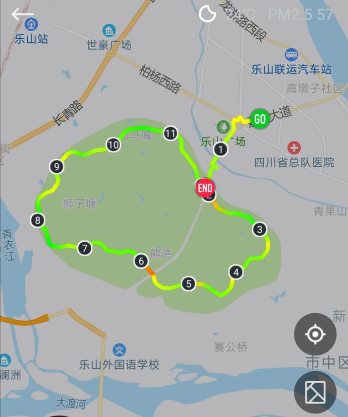 乐山的城市路跑我们选择了绿心公园的线路,这里是乐山的城市绿肺,天然“氧吧”,公园西侧和南侧分别是青衣江和大渡河。环公园的主路一圈,正好长约10公里。