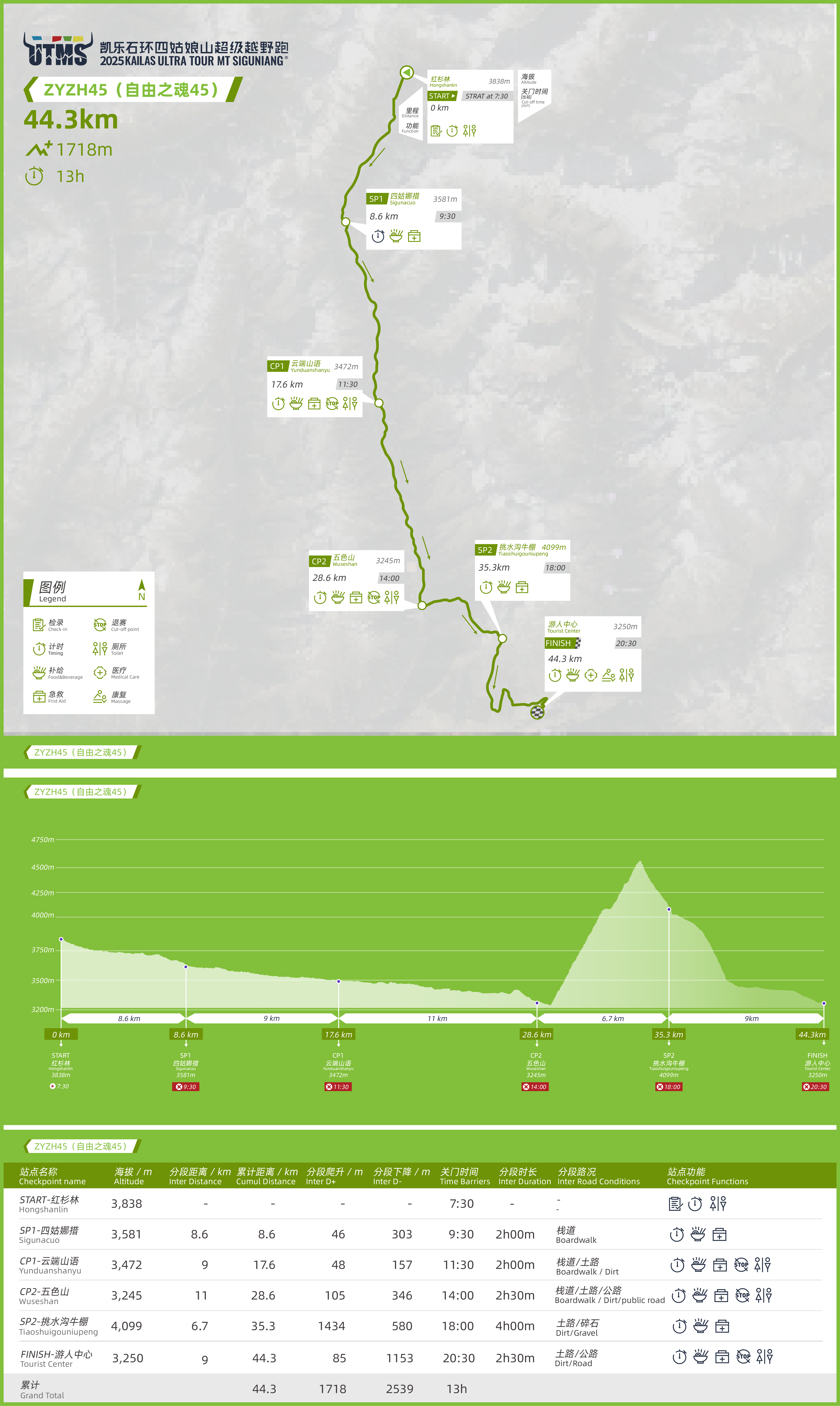 本赛道的挑战难度大,多处海拔4300以上的技术路线,比其他组别都略紧张的关门时间,一条真正结合越野跑技术和登山技术的赛道,需要选手有全面的综合能力。