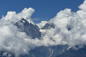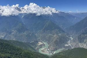 与大雪山隔大渡河相望,直线距离仅20km,落差高达4700m,视觉效果极具压迫感。