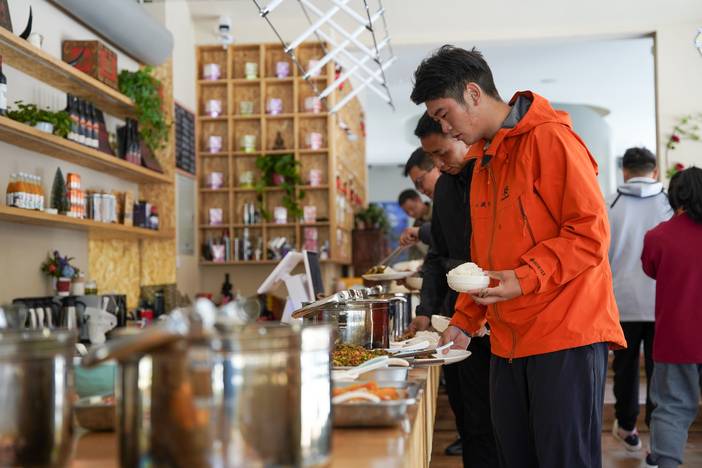 玩耍累了走进岩火牦牛肉烤肉店饱餐一顿