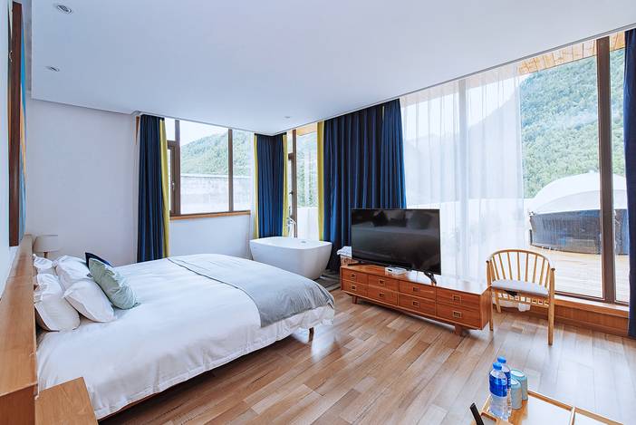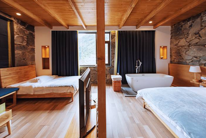吾野吾家客栈以亲子为主题的精品客栈,每间客房空间布局充分满足家庭出行。最特别的是客房都配有超大浴缸和落地窗,沐浴同时能私享山景无边。景观套房独享70平开放豪华露台,在星空下与家人纵享欢愉时光,这一刻值得珍藏。